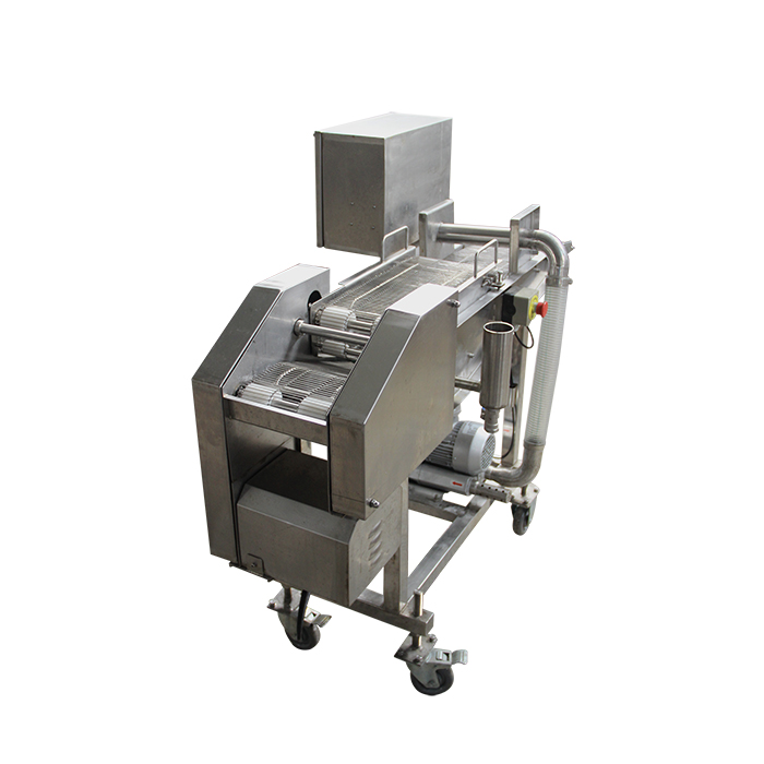 天婦羅裹漿機(jī)自動(dòng)完成產(chǎn)品的上漿過程,稀漿、濃漿均可。產(chǎn)品經(jīng)上下網(wǎng)帶,在漿液中沾滿漿液,上漿后的產(chǎn)品經(jīng)風(fēng)淋,避免過多的漿液帶入到下一工序。