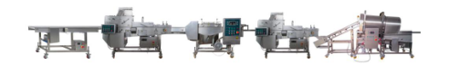 雞腿生產(chǎn)線把混合好的雞腿或者雞翅經(jīng)上粉,上稠漿,上粉,滾筒上粉,油炸,速凍等工藝做出裹粉的炸雞腿。雞腿生產(chǎn)線的需要配置前處理設(shè)備和后處理設(shè)備:油炸,包裝等設(shè)備,雞腿生產(chǎn)線與這些配套設(shè)備組成一條完整的快餐調(diào)理生產(chǎn)線。