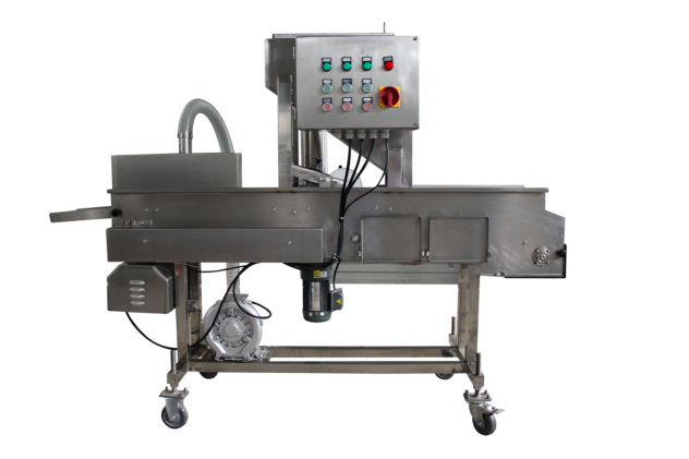 裹面包屑機(jī)與上漿機(jī)配合使用,裹面包屑機(jī)可單獨(dú)使用。上干康機(jī)對(duì)市場(chǎng)上流行的漢堡肉餅、麥樂雞塊、魚香漢堡肉餅、土豆餅、南瓜餅、肉串等產(chǎn)品進(jìn)行上面包屑處理,是快餐店、配送中心、食品工廠理想的上面包屑設(shè)備。