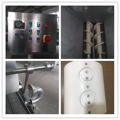 滾筒成型機(jī)可以生產(chǎn)魷魚(yú)圈,洋蔥圈,雞塊等各種形狀的產(chǎn)品,通過(guò)更換模具,可以連接濃漿機(jī)和上糠機(jī)和油炸機(jī)和速凍機(jī)組成一條流水線,