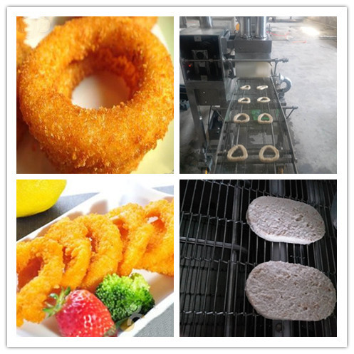 滾筒魷魚(yú)圈成型機(jī)可以做不同直徑大小的魷魚(yú)圈和洋蔥圈,它可以連接不同涂裹設(shè)備生產(chǎn)土豆餅,雞肉餅,牛肉餅和雞塊等不同產(chǎn)品,更換模具方便,適合于快餐店和小型連鎖店使用。